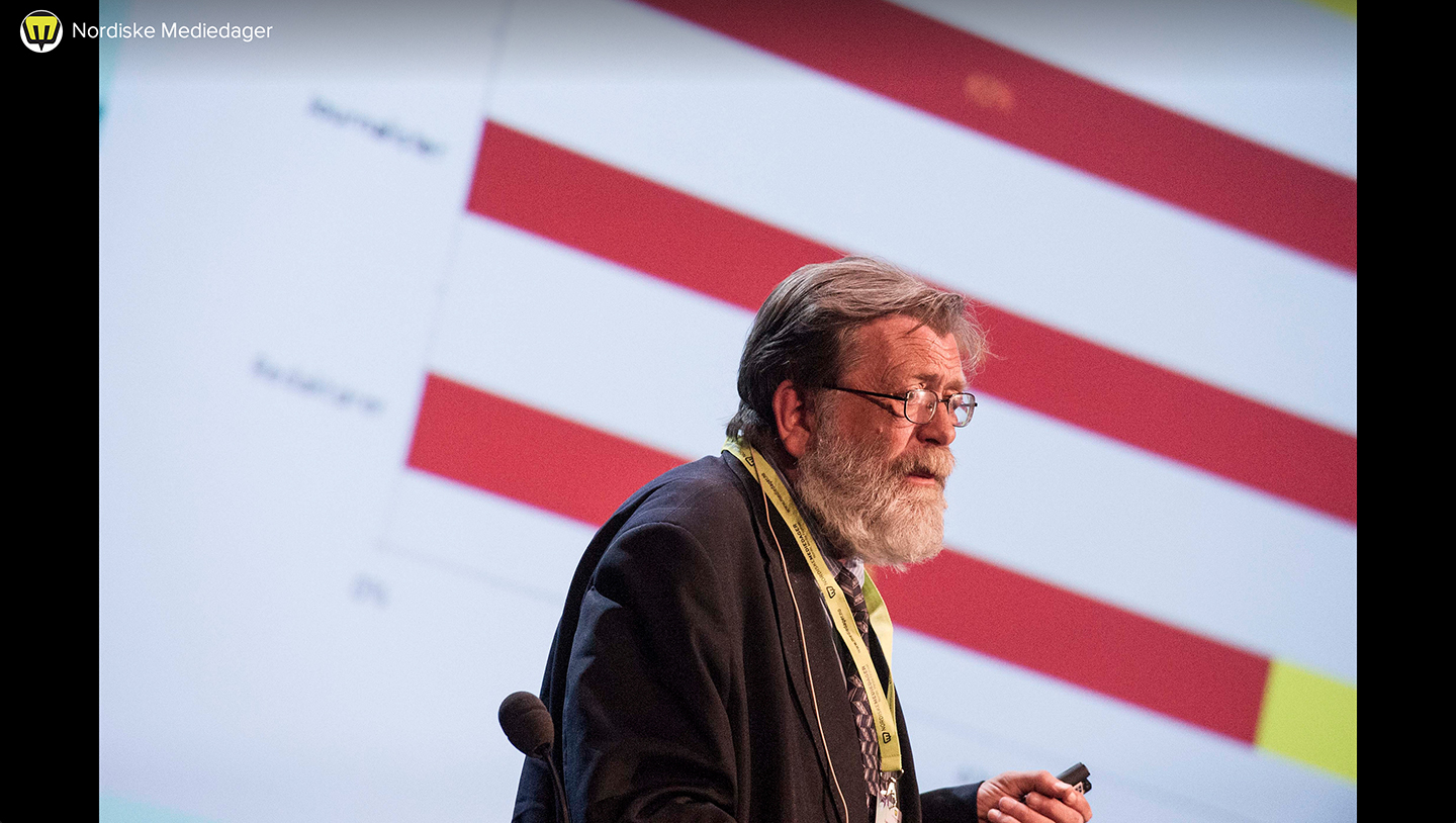 Frank Aarebrot (professor i samanliknande politikk) la også i år fram Medieundersøkelsen, som inkluderer spørsmål om journalistar sine politiske preferansar (Foto: Flickr.com/mediedager)