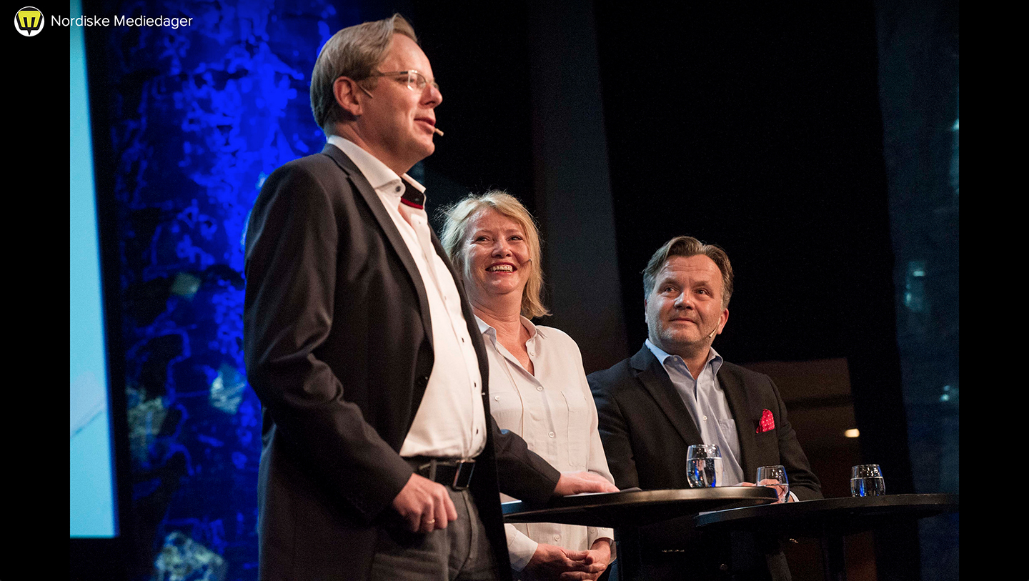 Ib Thomsen i Frp (t.v.) meiner journalistikken ikkje er politisk farga. Thomsen var ein del av panelet som kommenterte Medieundersøkelsen (Foto: Flickr.com/mediedager)